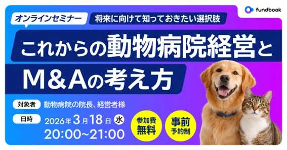 M&A仲介fundbook、無料オンラインセミナー「これからの動物病院経営とM&Aの考え方」を3月18日(水)に開催