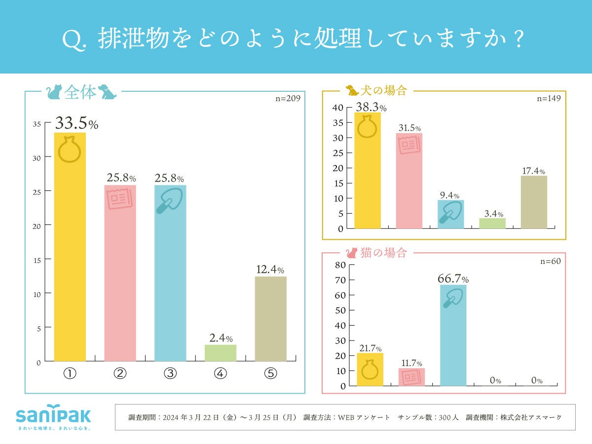 犬・猫を飼う全国の男女(20~69歳)300人に聞いたペットの排泄物処理の仕方とは?