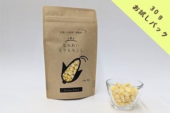 そんな美味しい「なみあい とうもろこし」の旬の美味しさを、そのままとじ込めたフリーズドライ商品です。「ワンちゃんのおやつ」、「ネコちゃんのおやつ」、「小動物・小鳥のおやつ」3種類をラインナップ。