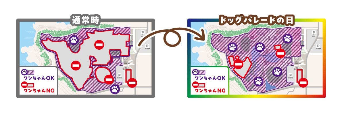 ◆2日間限定で、園内のほぼ全エリアがワンちゃんOKに!