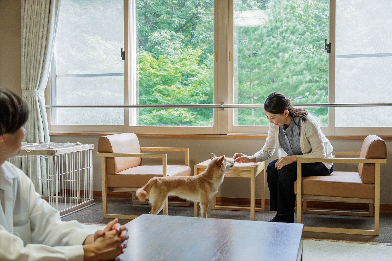 広々とした和室で、大型のワンちゃんも安心して過ごせるお部屋です。落ち着いた和の空間で、ワンちゃんとの快適な滞在をお楽しみいただけます。
