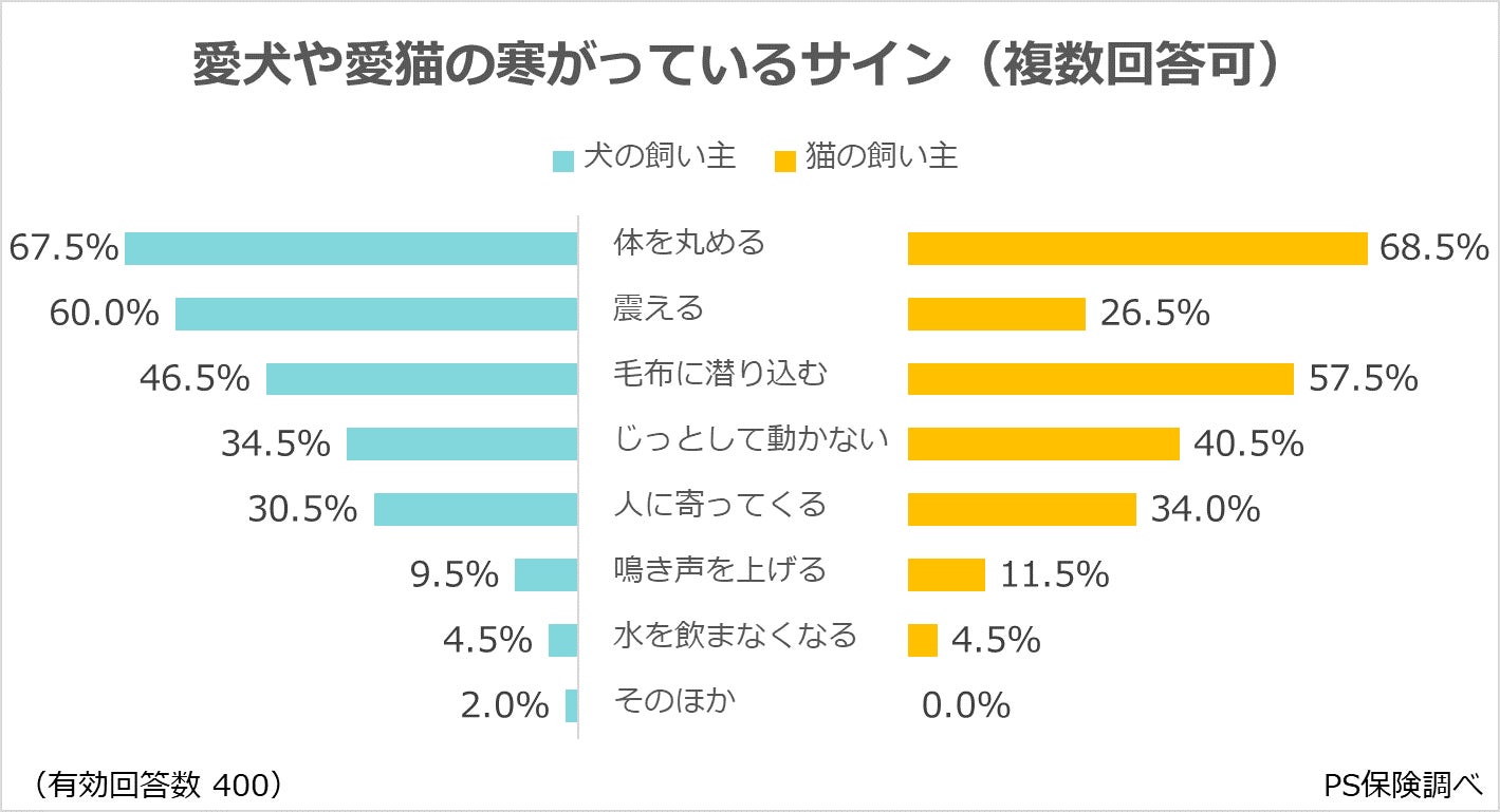 愛犬や愛猫が寒がっているサインについて、飼い主に伺いました。