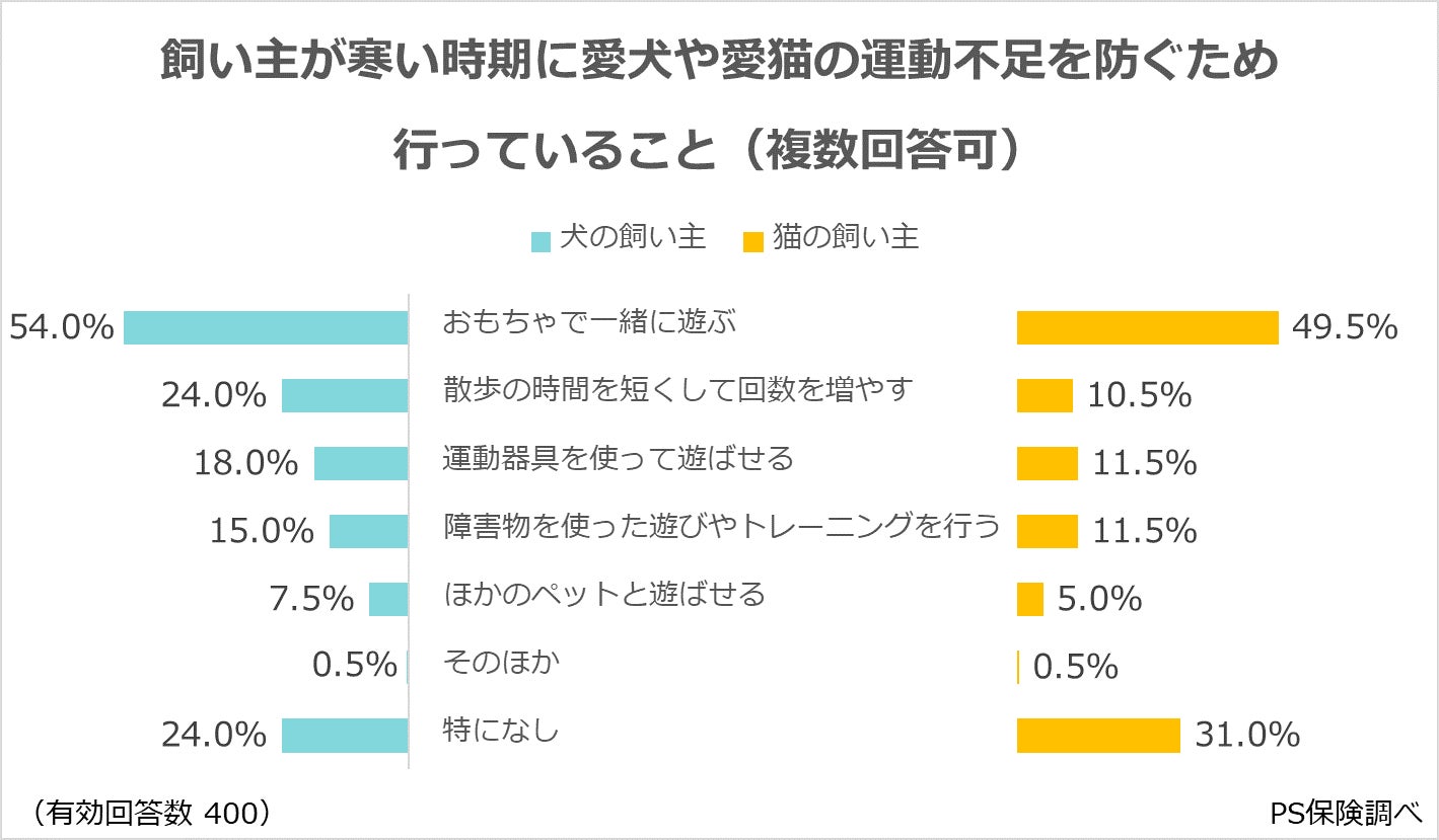 寒い時期の愛犬や愛猫の運動不足対策として、行っていることを飼い主に伺いました。