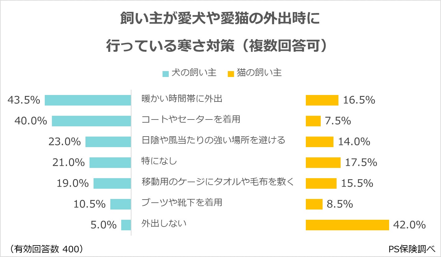 愛犬や愛猫に行っている外出時の寒さ対策について、飼い主に伺いました。