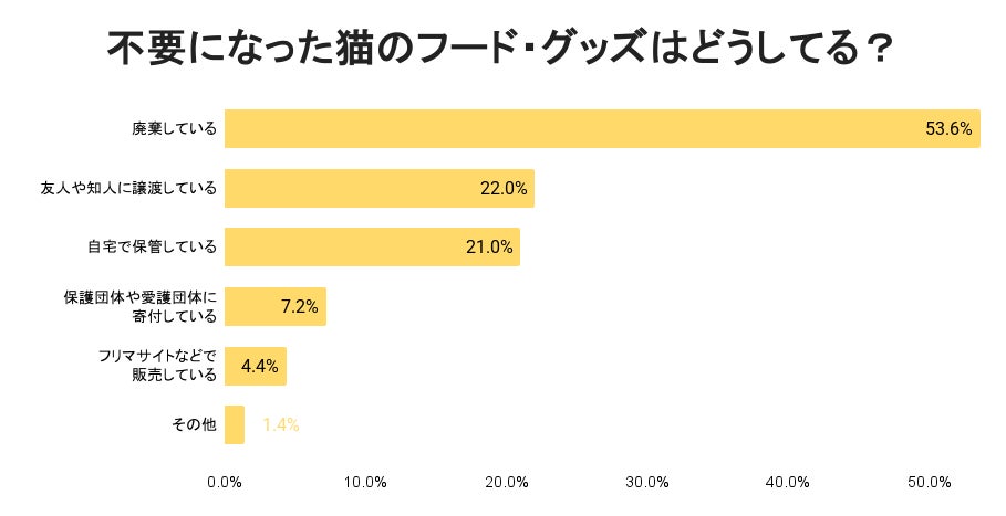 不要になった猫のフード・グッズはどうする?|半数以上が「廃棄」と回答