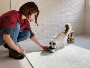 ③ 「減量チャレンジ」をスタート: 動物病院の指導のもと、対象の減量用療法食を購入・使用して1ヶ月以上継続