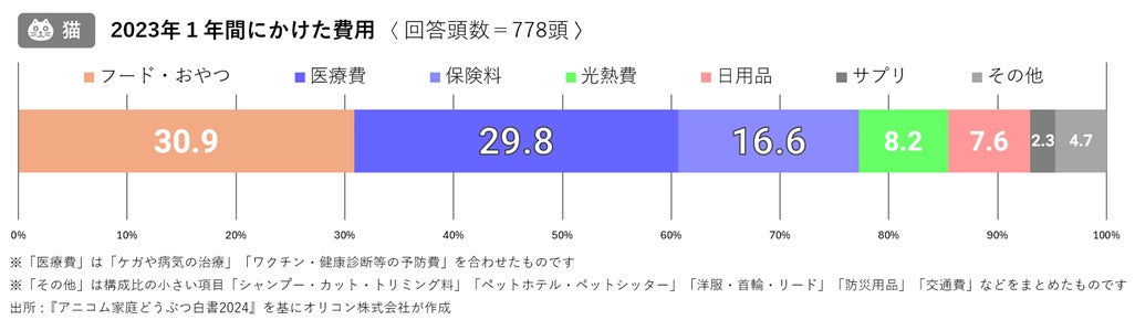 調査⽅法:アニコム損保のペット保険の契約者に対し、2023 年1月1日〜 12月31 日の1年間にペット1頭へ支出した費用について、インターネット上でアンケートを実施。