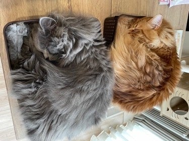 また、幼少期は好奇心はあるものの少し臆病な性格だったと記憶しておりますが、今ではすっかりリラックスした寝姿まで見せてくれ、しらすくんがご家族に心を開き安心しきっている気持ちが伝わってまいります。先住の猫ちゃんとのシンクロした姿にも、ほっこりしますね。今後とも、どうぞ宜しくお願いいたします。