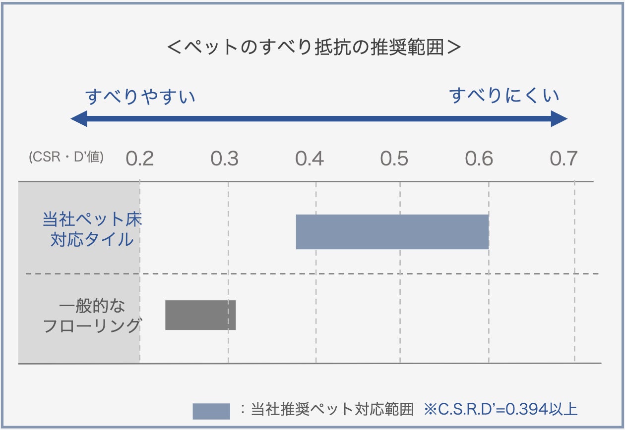日本建築学会が提示したペットの安全性からみた床の滑りやすさを評価する指標。