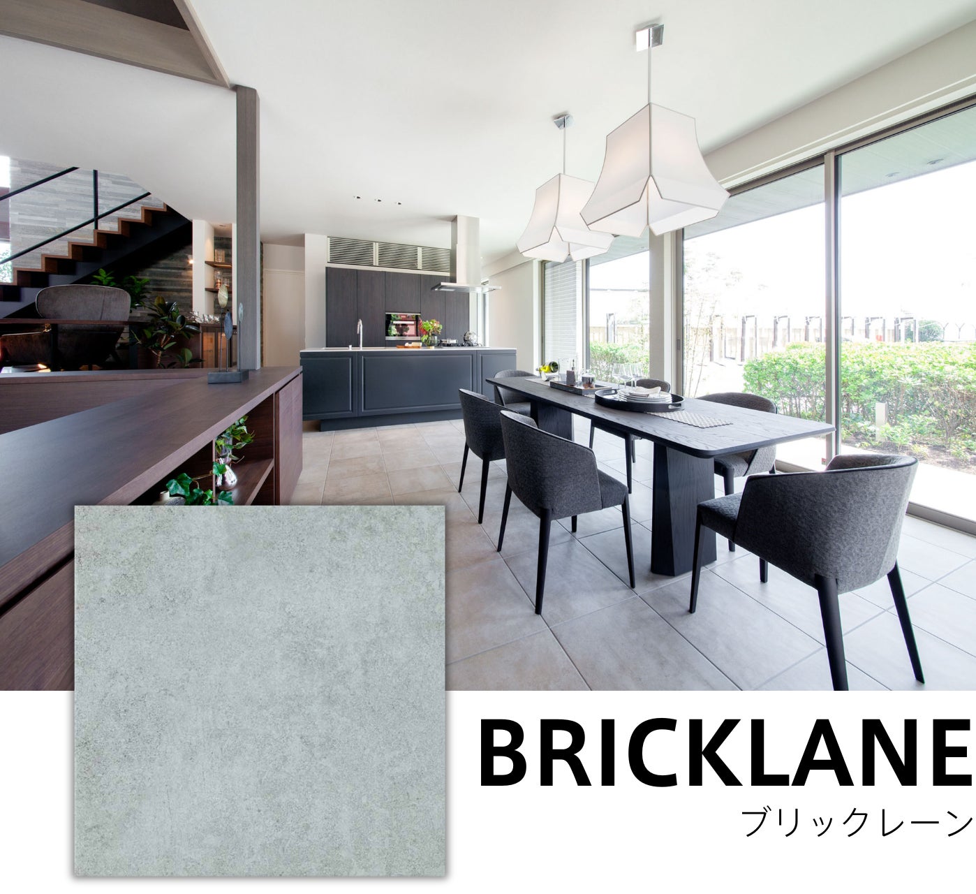 かつてレンガ産業が盛んであったこの地は、今や時代の先端をいくファッショナブルな街として脚光を浴びています。「ブリックレーン」のセメントとブリックを掛け合わせたような色調・色ムラは、この街並みを表現、クラシックからモダンなテイストまで幅広くマッチできるよう仕上げられています。