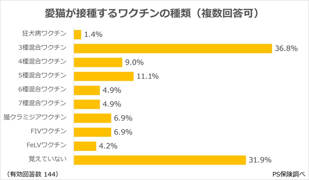 愛猫に過去に接種をした、または接種予定のワクチンについて飼い主に伺いました。
