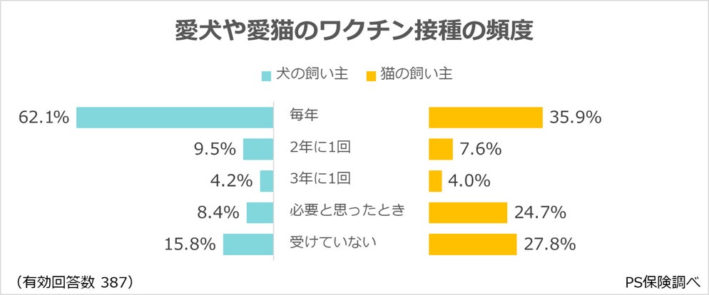 愛犬や愛猫のワクチン接種の頻度について、飼い主に伺いました。