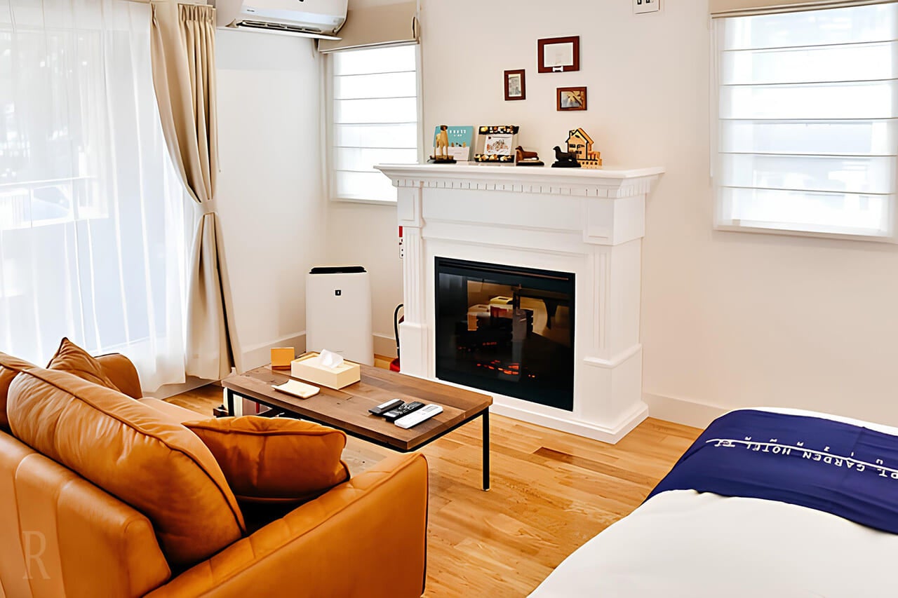さらに、安全性に配慮したLED暖炉や琉球畳の小上がりスペースなど、インテリアにもこだわりが感じられます。お部屋ごとに異なる魅力があり、訪れるたびに新しい発見があります。