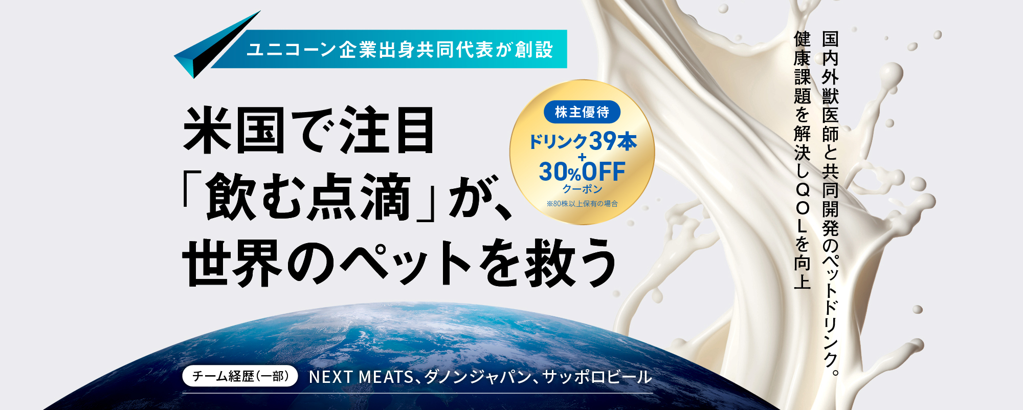 この日本の伝統飲料を武器に、世界の4.7億頭の犬をより健康にすべく、そしてこれからは3.7億頭の猫も健康にすべく、まずはアメリカから“ペットドリンク”カテゴリー創出を目指しています。