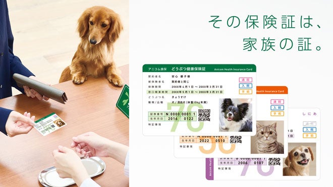 - 世界でたった1枚の家族の証、「どうぶつ健康保険証」。動物病院の窓口で、人の健康保険証のように使えます。