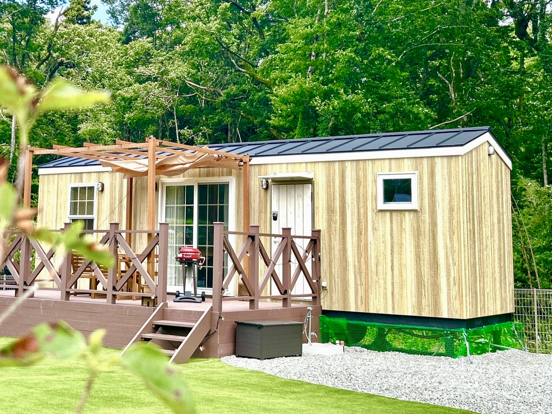 Solana富士御殿場は、御殿場インターからアクセスしやすい好立地に位置し、トレーラーハウスをベースとした独立型の宿泊棟を採用。冷暖房、トイレ、バスルーム、キッチンなどを備えた快適設備で、滞在中の過ごしやすさを保ちながら、アウトドアの魅力を気軽に楽しめます。