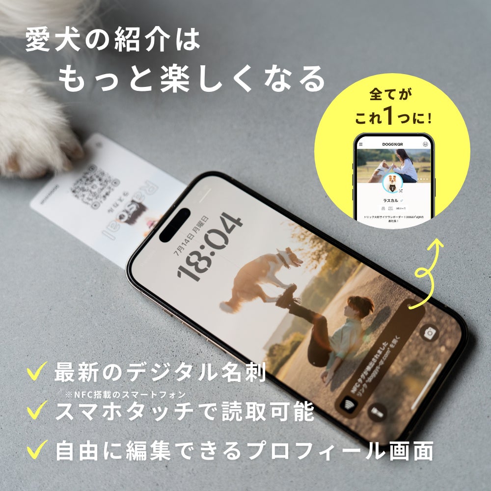 飼い主の交流は、新しいカタチへーー。SNSで話題となり、累計1000個以上が売れた迷子札サービスDOGGY’sQRから、犬用スマート名刺「DOGICA(ドギカ)」が誕生しました。