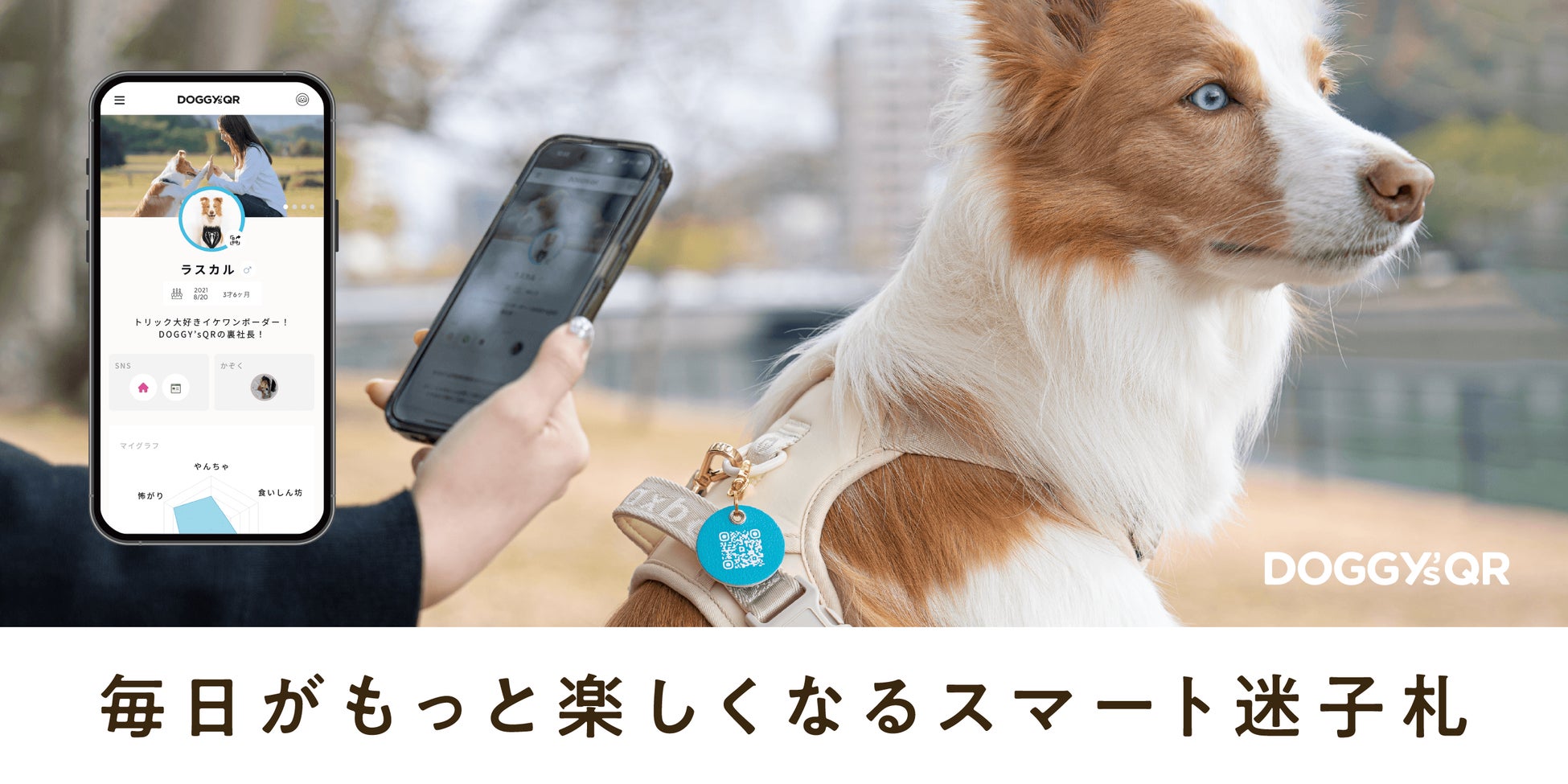 DOGICAは、SNSで話題となり累計1000個以上が売れた迷子札サービス「DOGGY’sQR(ドギーズキューアール)」から生まれました。