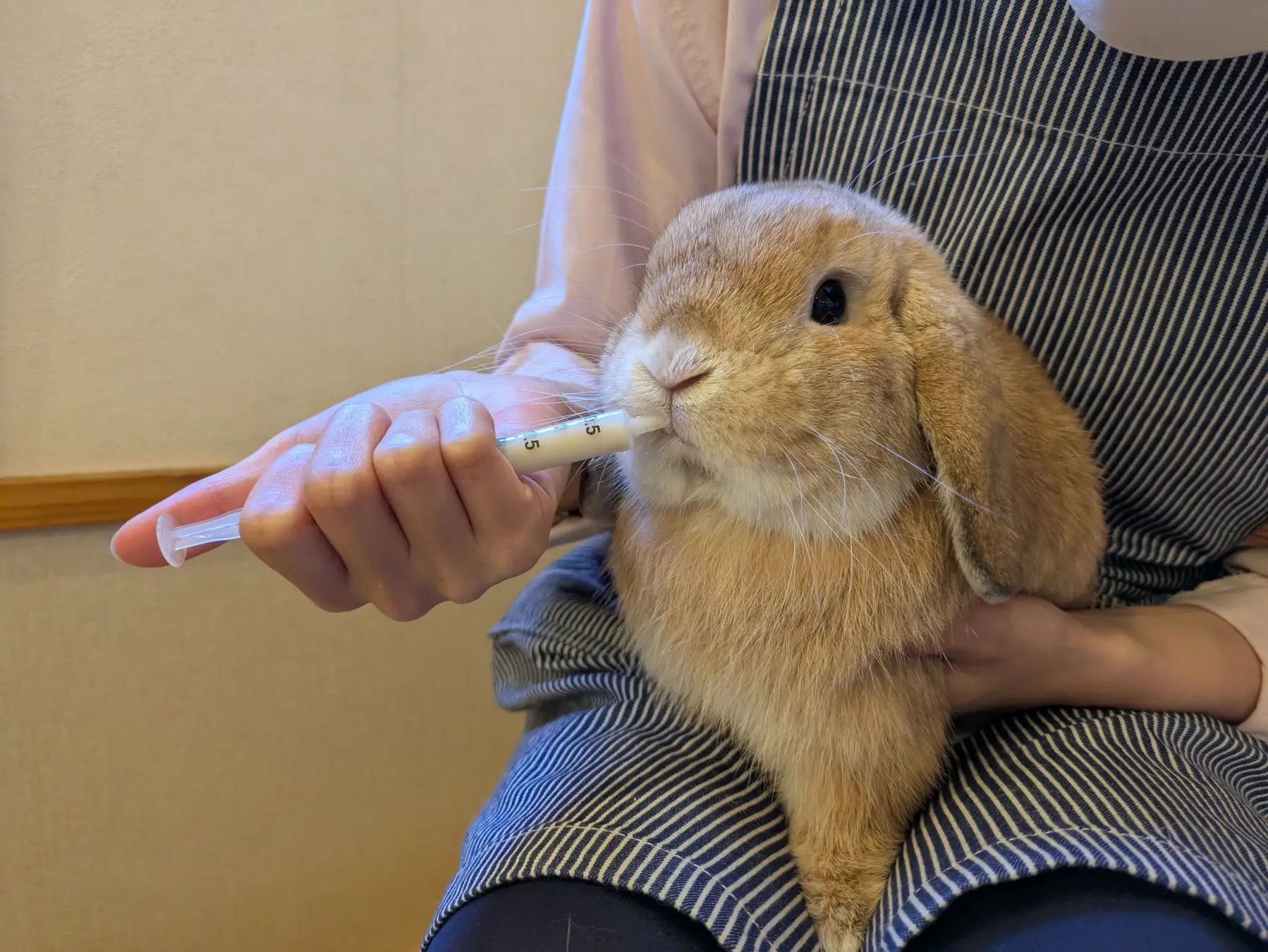 これまでは食欲減退時の栄養補給は、主にペレットをお湯でふやかすなどしてシリンジで補給していましたが、これでは牧草と盲腸糞から得ていた栄養素が補うことができませんでした。