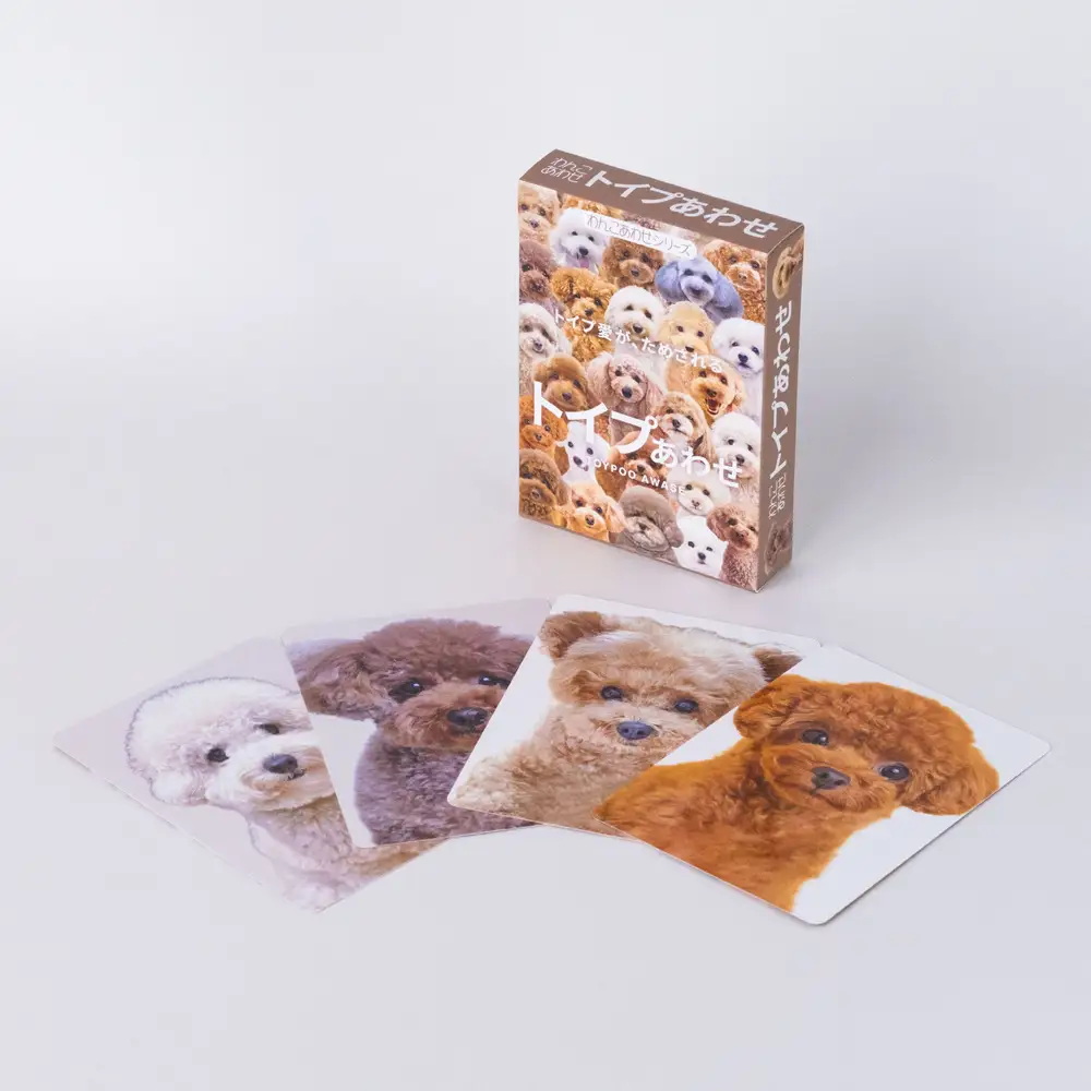 今回登場する『トイプあわせ』では、わんこ業界でもトップクラスの人気を誇るトイプードル25頭がカード化。前作同様、「トイプあわせ」「トイプかるた」「トイプ探偵」「♂♀バカラ」「おなまえ暗記」「トイプ抜き」の全6種類のゲームが楽しめます。