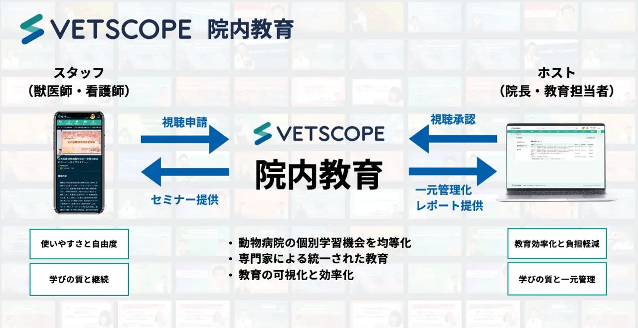 ベットピアでは、「獣医療の学びをより身近に」を掲げ、これまでに250本以上のセミナーを専門家と共に提供してきました。今回、そのコンテンツを病院単位で体系的に利用できる仕組みとして「VETSCOPE院内教育」を開発しました。