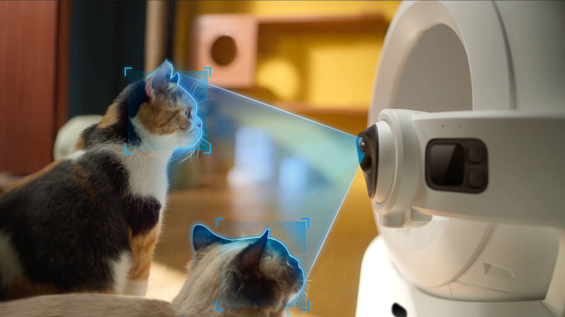 排泄物の回収、袋詰め、袋を閉じるまでを全自動で行い、トイレ掃除の手間を軽減します。また、複数の愛猫をAIカメラと体重センサーで識別し、トイレの回数や排泄物のキャプチャ、トイレ周りでの行動を記録することができ、愛猫の健康管理に役立てることができます。ペットと飼い主の快適な生活をかなえる、最先端のペット家電です。