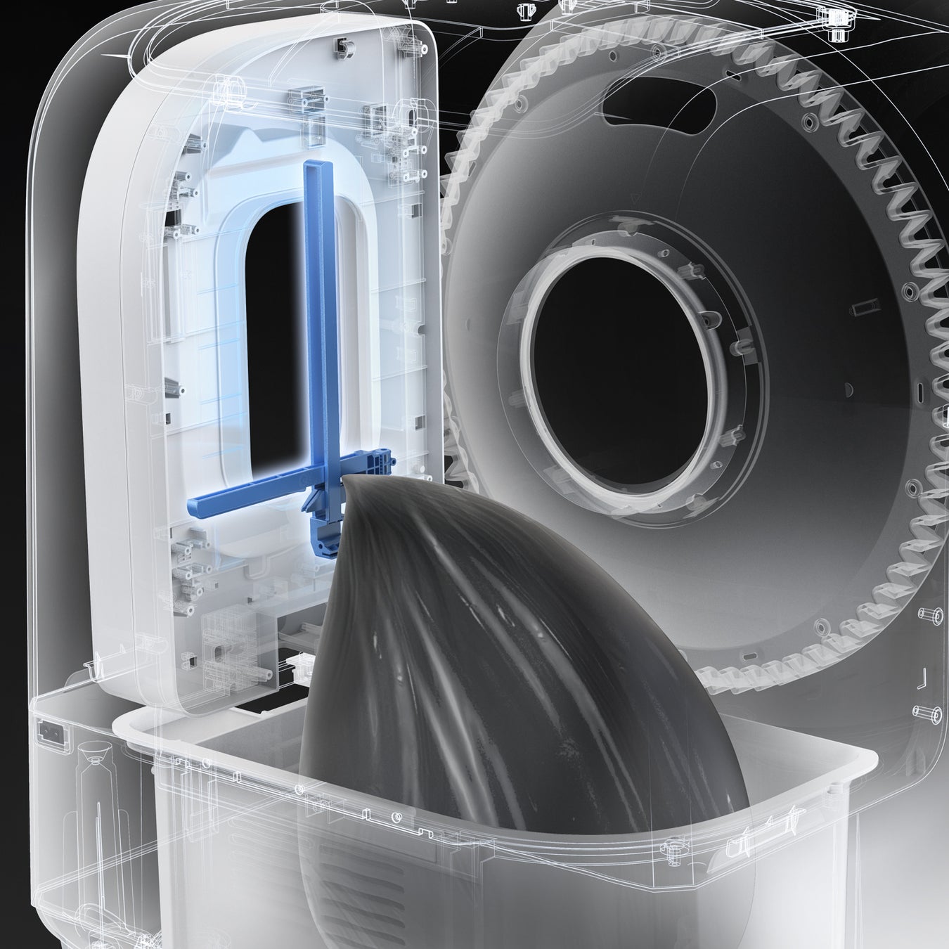 排泄物が入った袋は自動で密封され、おい洩れを防ぎます。においの元となるアンモニアの拡散を軽減します。
